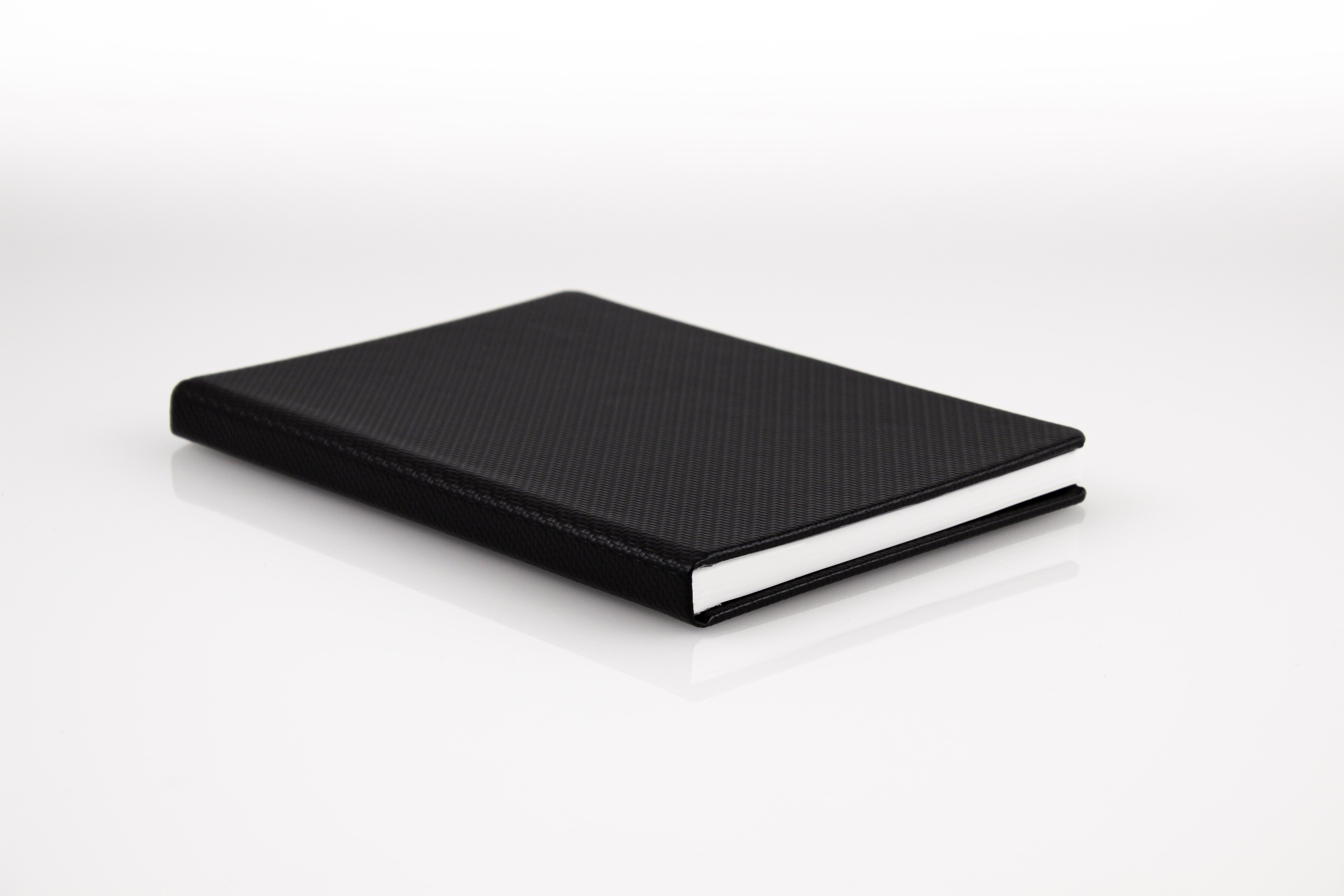 Copertă cartonată, din piele ecologică de foarte bună calitate; textura Carbon Black |