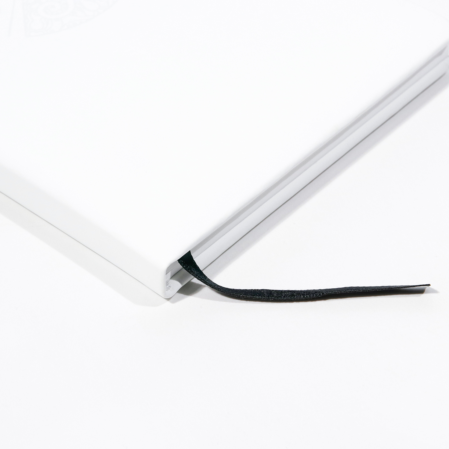 Buclă pentru pix din bandă elastică și semn de carte, ambele de culoare neagră și forzaț alb |