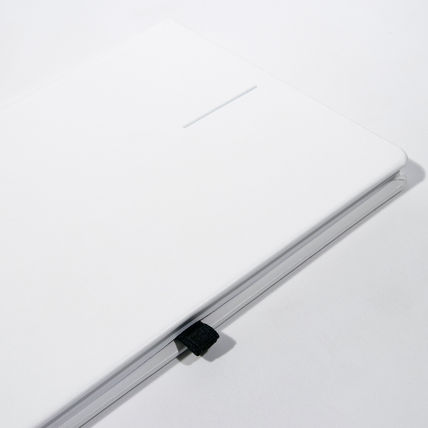 Buclă pentru pix din bandă elastică și semn de carte, ambele de culoare neagră și forzaț alb |
