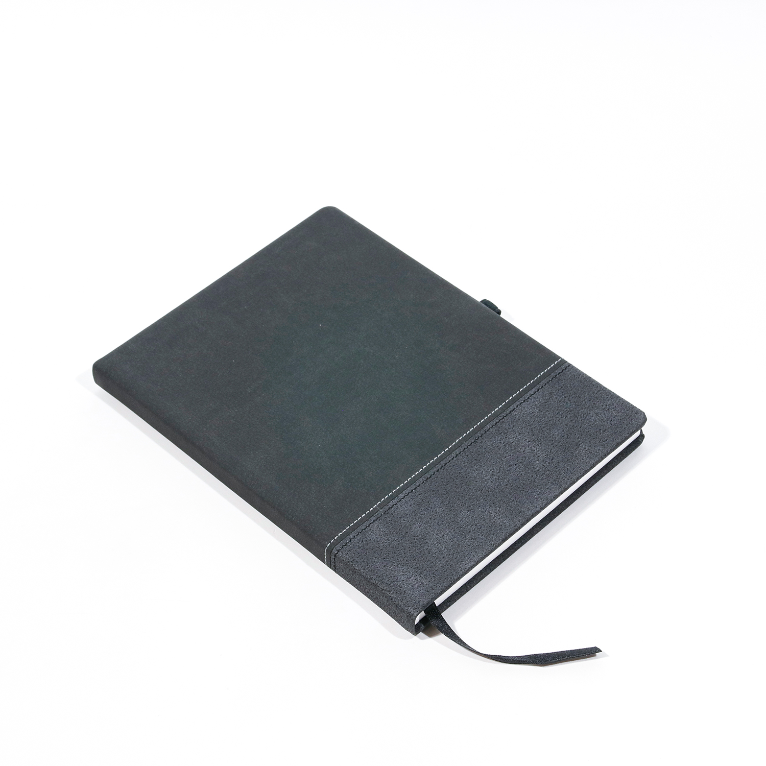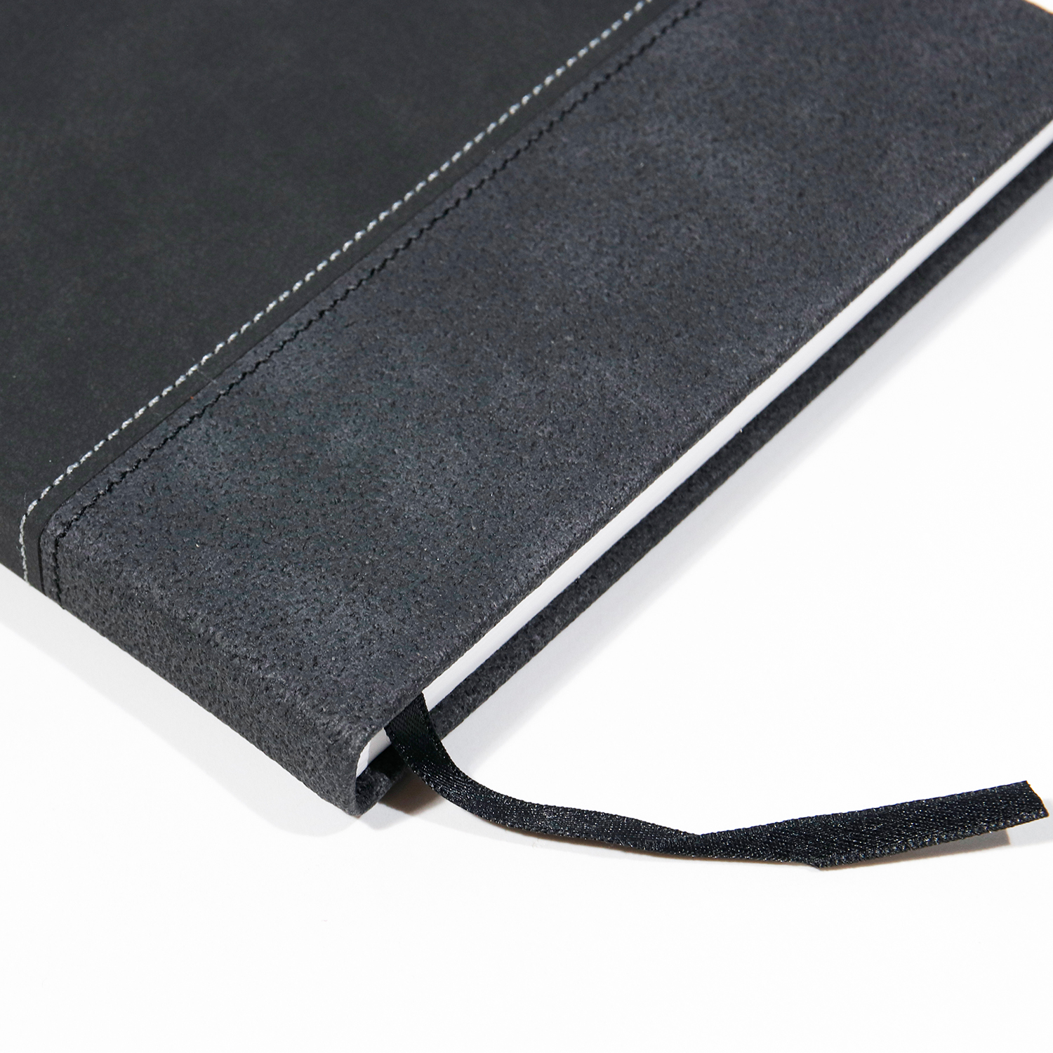 Copertă cartonată, din piele ecologică de foarte bună calitate, textură Senso combinată cu Lava ambele de culoare neagră personalizată prin cusăturile decorative de culoare neagră și gri creând astfel un design extrem de atrăgător. |