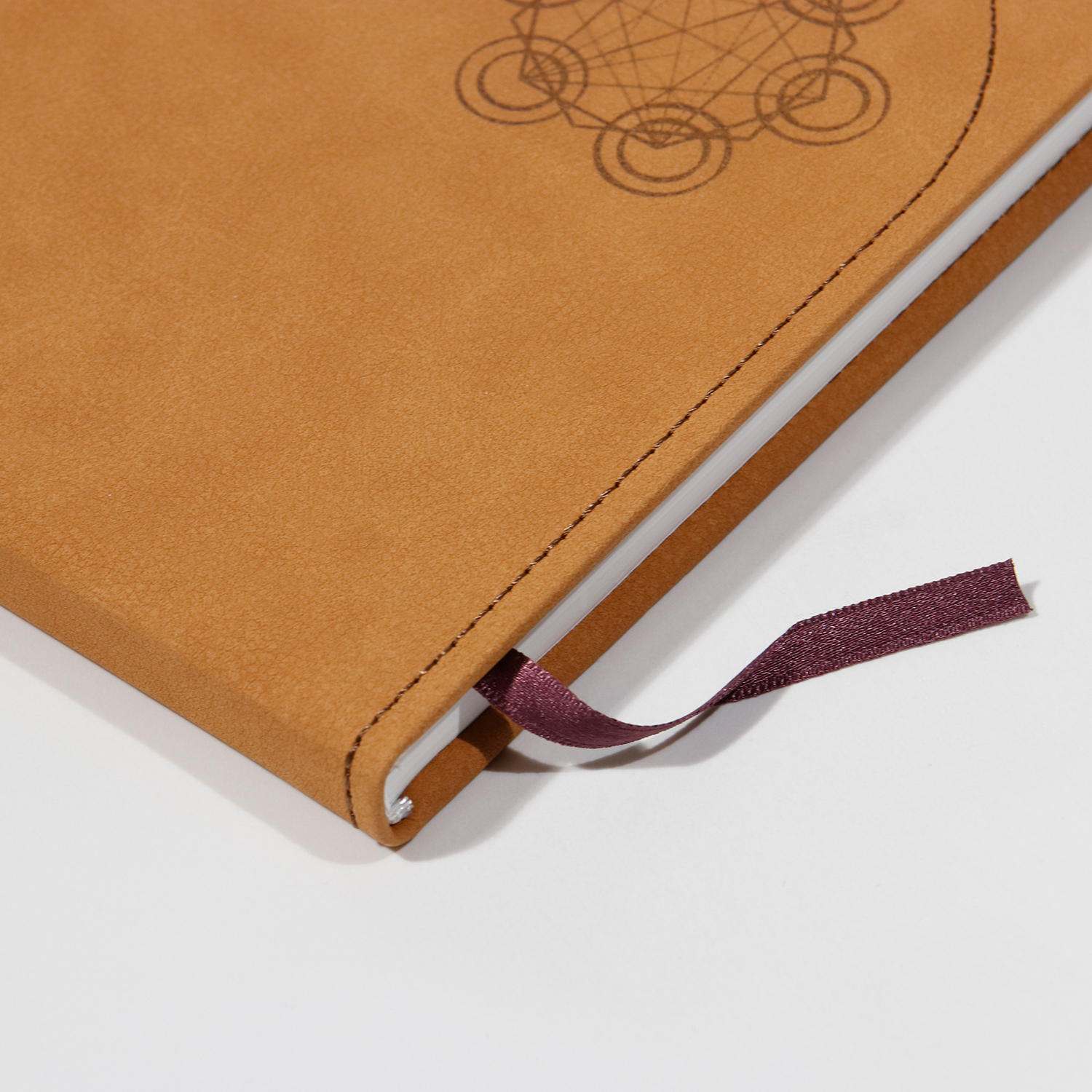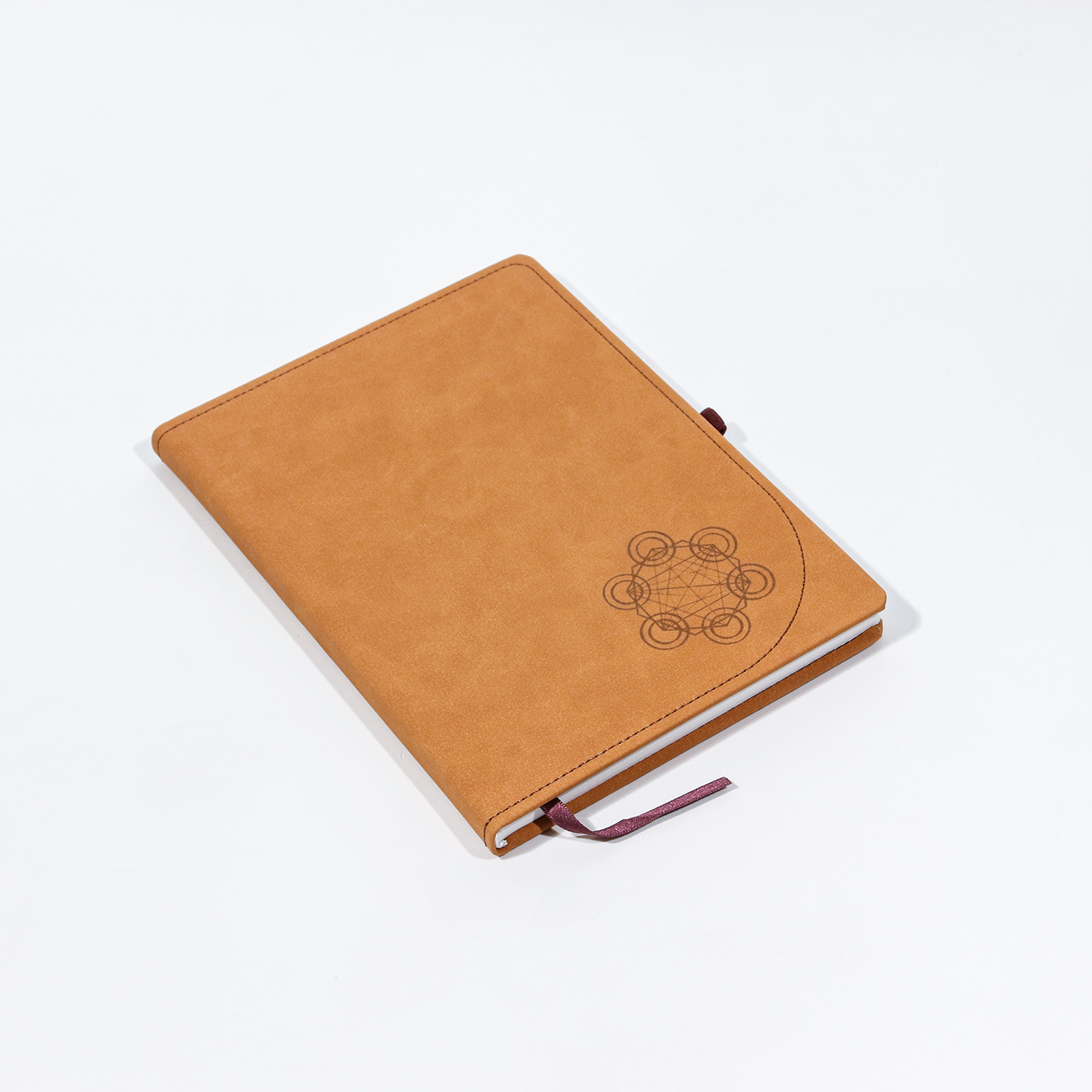 Copertă cartonată, din piele ecologică de foarte bună calitate, textură Senso de culoare maro deschis , personalizată prin gravură și cusături decorative de culoare maro creând astfel un design extrem de atrăgător. |