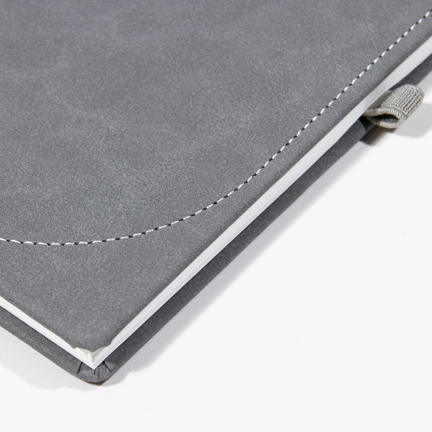 Buclă pentru pix din bandă elastică și semn de carte, ambele de culoare gri și forzaț alb |